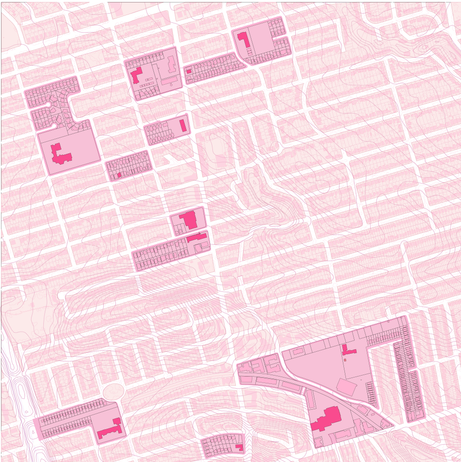 Throughout the project, I focus my study on the relationship between school and home fences. I highlight the schools within the neighbourhoods and document the walls that divide the school and homes and how they differ in each area.